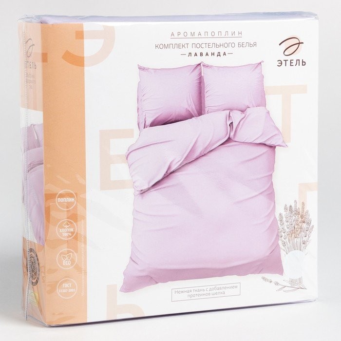 Постельное бельё «Этель» дуэт Арома Поплин 150×210 см — 2 шт., 220×240 см, 50×70 см — 2 шт., Лаванда, 125г/м², 100% хл