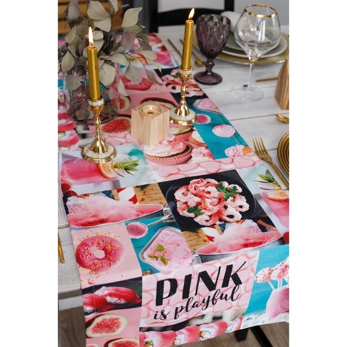 Дорожка на стол «Этель» PINK 40×146 см, 100% хл, саржа 190 гр/м2