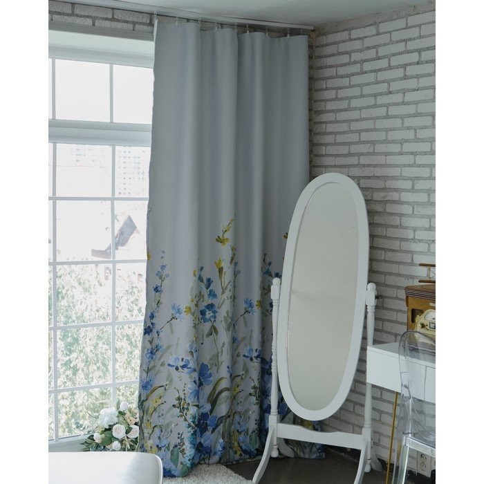 Штора портьерная Этель «Акварель» цв.синий, 250*265 см, пл. 210 г/м2, 100 п/э