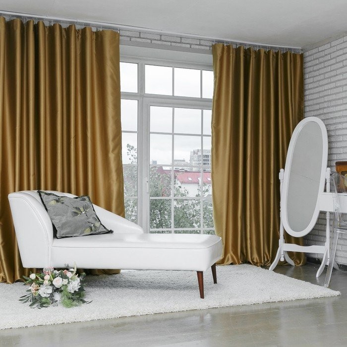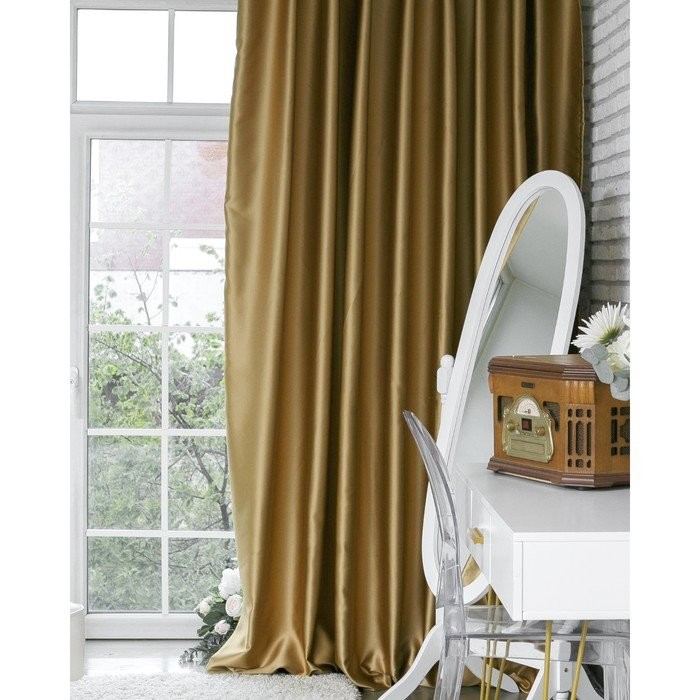 Штора портьерная «Этель» 145×265 см, двусторонний блэкаут, цвет Золотой, пл. 240 г/м², 100% п/э