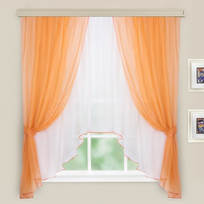 Комплект штор для кухни Шарм 285×160 см, персик-молочный, пэ 100%