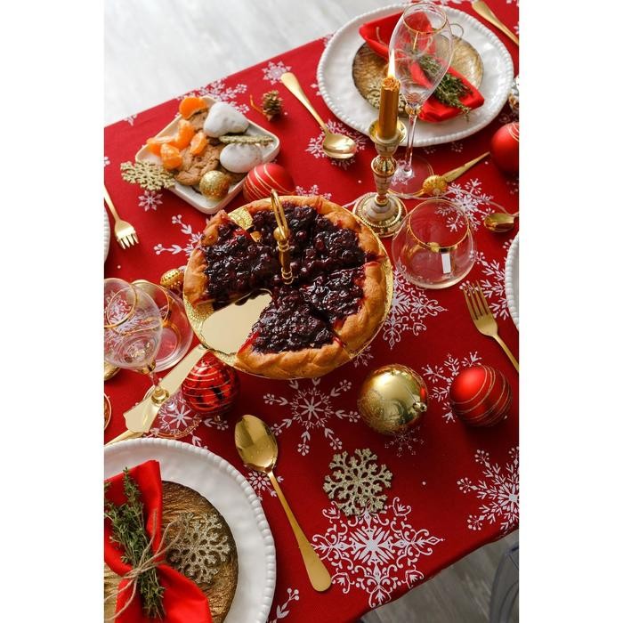 Скатерть Доляна «Новый год: Белые снежинки» 110×149 см, 100% хлопок, 164 г/м2