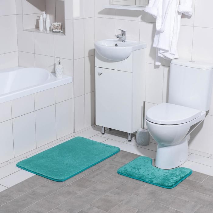 Набор ковриков для ванны и туалета Доляна «Поле», 2 шт: 39×50, 50×80 см, цвет зелёный