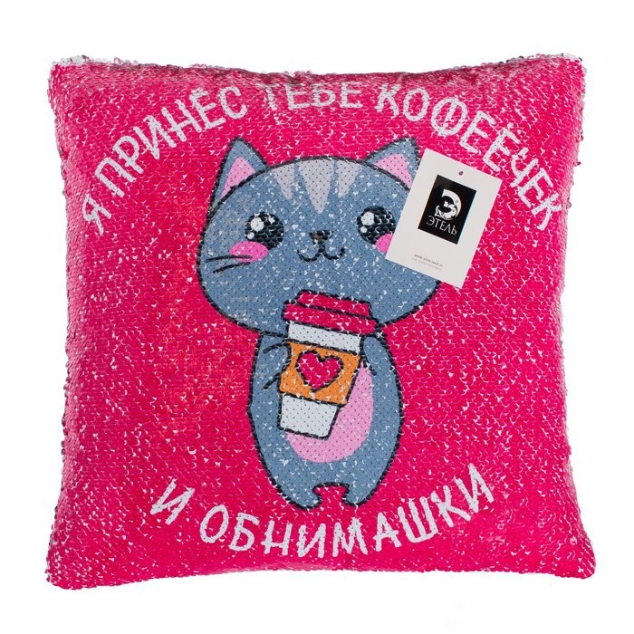 Наволочка с пайетками «Этель» Обнимашки, 40×40 см, велюр, 100% п/э