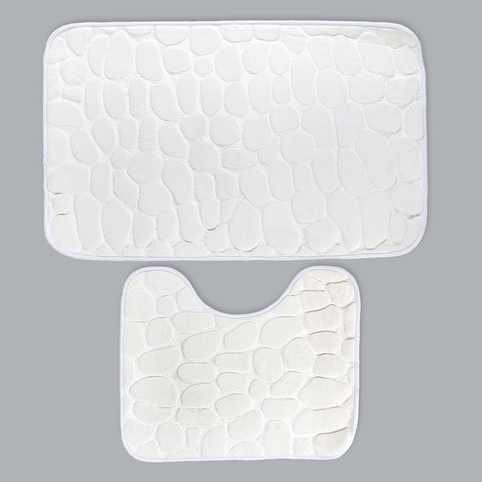 Набор ковриков для ванны и туалета Доляна «Галька», 2 шт: 39×50, 50×80 см, цвет белый