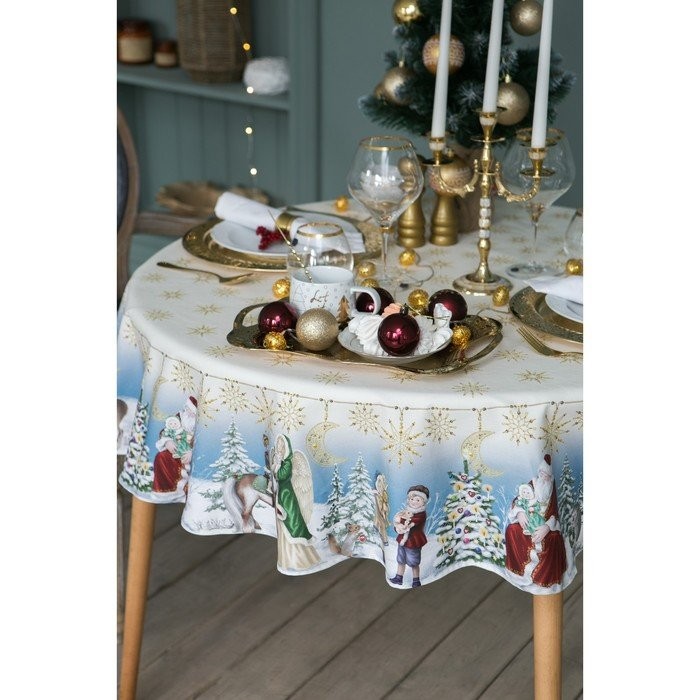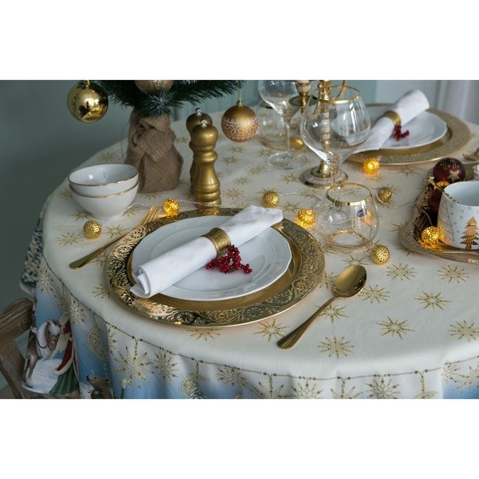 Скатерть «Этель» Christmas time d=220см +/-3 см с ГМВО, 100%хл, саржа 190 гр/м2