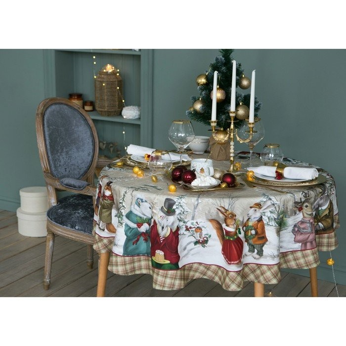 Скатерть «Этель» Winter holidays d=150см +/-3см с ГМВО, 100% хл, саржа 190 гр/м2