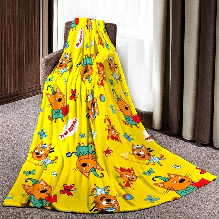 Плед Павлинка Три Кота Игра желтый 100х150см аэрософт, 190г/м пэ100%