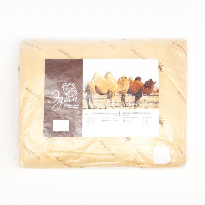 Чехол состоит из 100%-го полиэстера. Состав наполнителя: верблюжья шерсть 10%, полиэфирное волокно 90%.