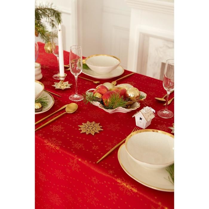 Скатерть Этель «Новый год: Снежинки» цвет красный, 150*220 см, 115 ±10 гр, 100% п/э