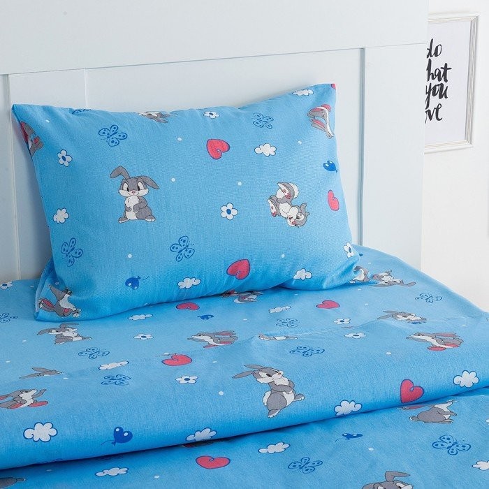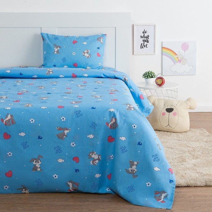 Постельное бельё Экономь и Я 1,5 сп. «Зайки» цвет голубой, 145×210, 150×210, 50×70 см-1 шт, бязь 120 гр/м2