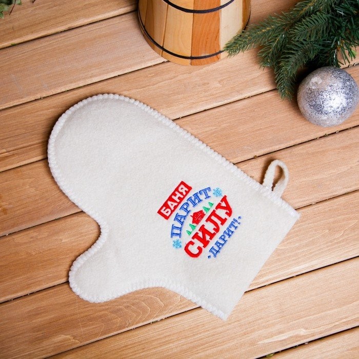 Рукавица для бани с вышивкой «Баня парит, силу дарит, с домиком»