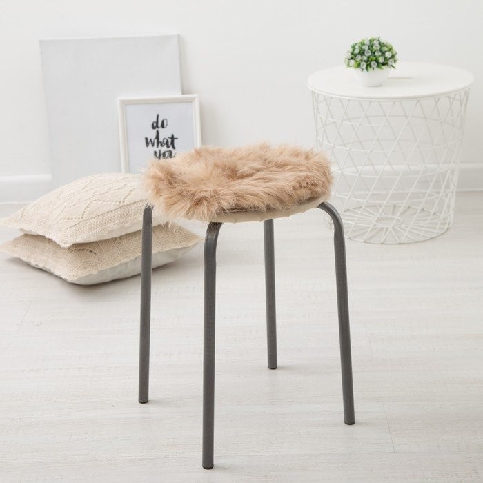 Сидушка на стул меховая Доляна «Пушинка» цв.бежевый d 30 cm,100% п/э
