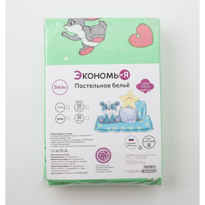 Постельное бельё Экономь и Я 1 предоставлена в следующих характеристиках: