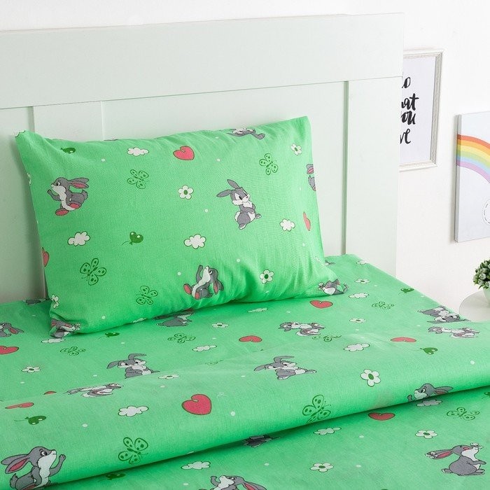 Постельное бельё Экономь и Я 1,5 сп. «Зайки» цвет зелёный, 145×210, 150×210, 50×70 см-1 шт, бязь 120 гр/м2