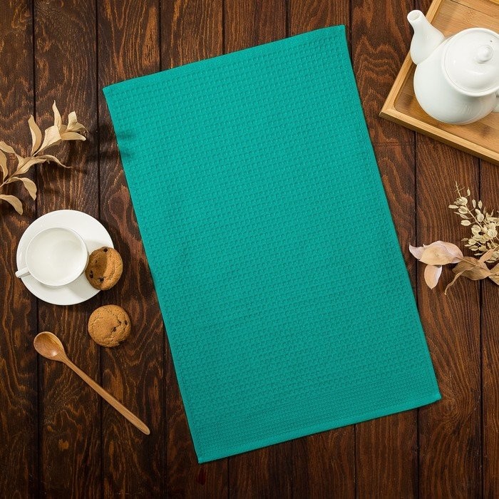 Полотенце «Доляна» цв. зелёный 35×60 см, 100% хл., крупная вафля 220 г/м2