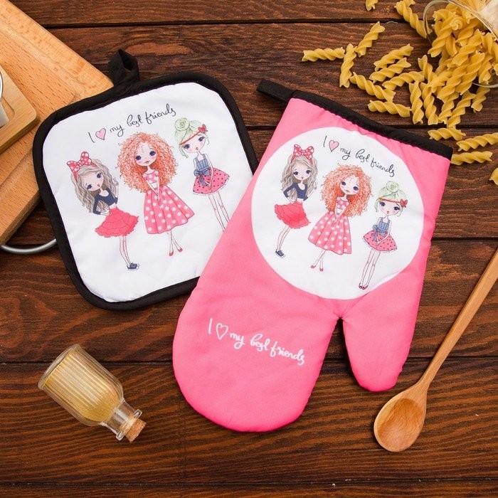 Кух. набор 2 пр. Этель Love Life «Подружки», прих. 17*17 см, рукав. 26*16 см,100% п/э