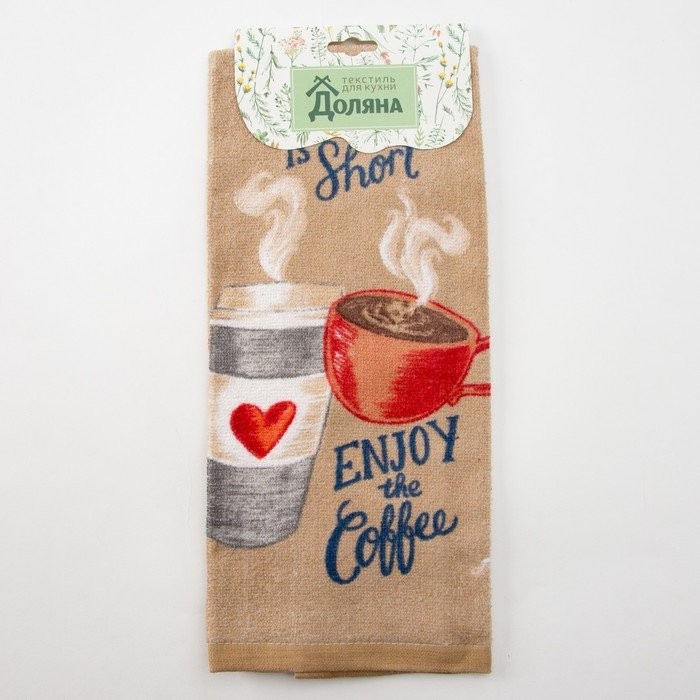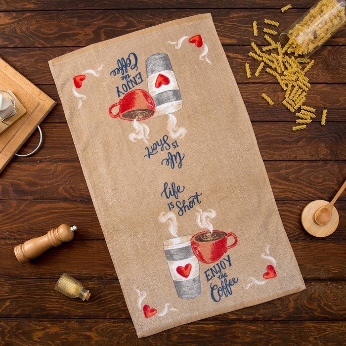 Полотенце кухонное Доляна «Любовь и кофе», размер 40×70 см, велюр/махра