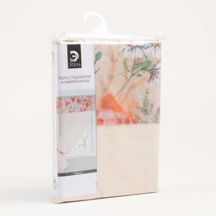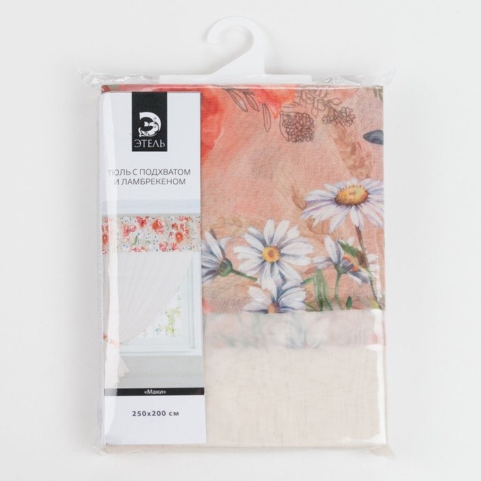 Тюль с подхватом и ламбрекеном «Маки» 250х200см, 100% п/э, вуаль