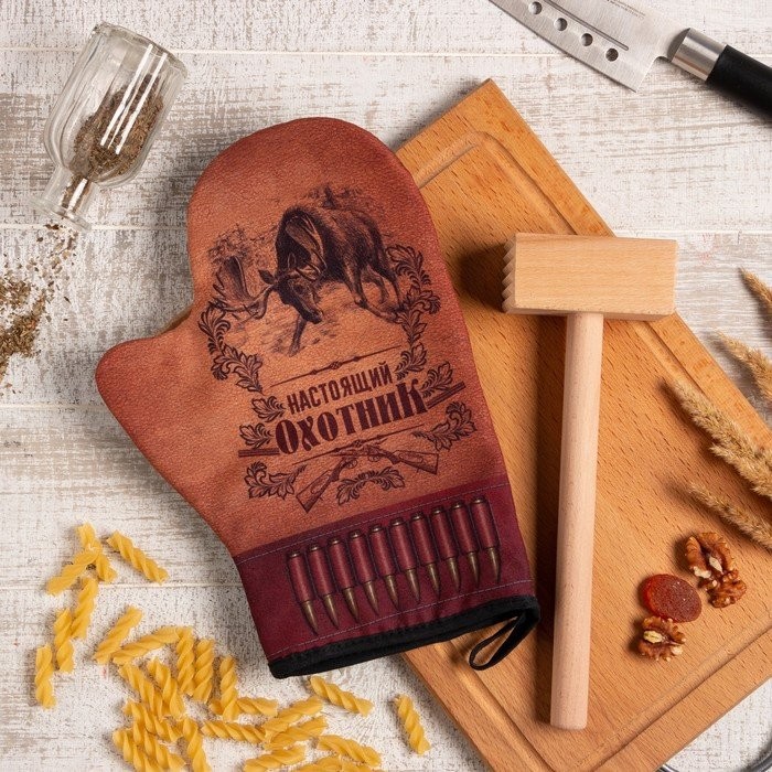 Кухонный набор «Охотник»,варежка-прихватка 20х28см, молоток деревянный
