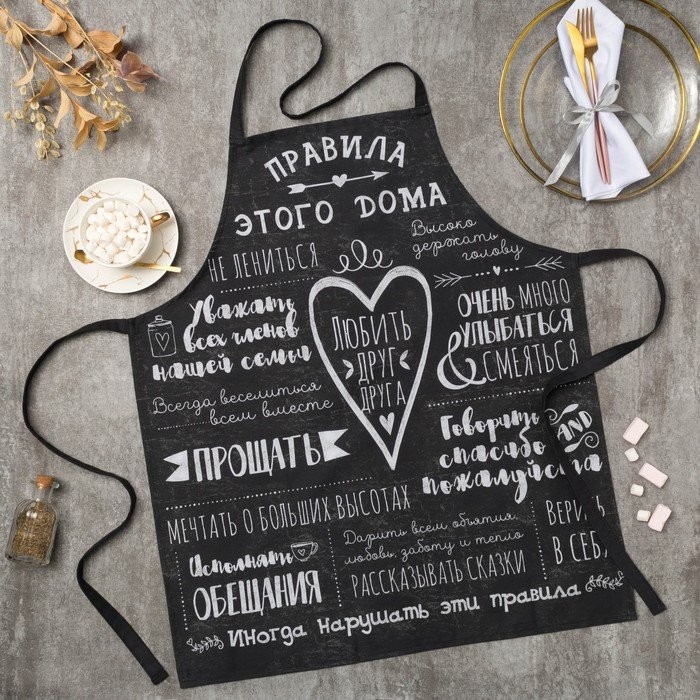 Фартук «Этель» Правила дома 70×60 см, 100% хлопок, саржа 190 г/м2