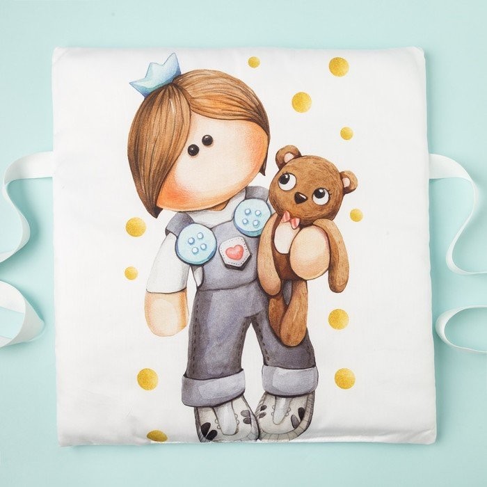 Бортики в кроватку Крошка Я «Принц Тим», цвет белый/серый, 35×35 см-8 шт, сатин