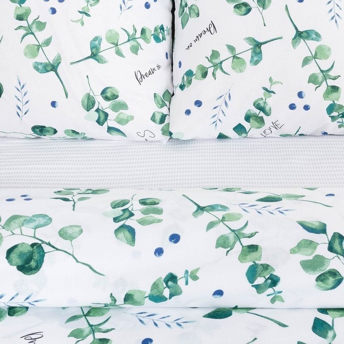 Постельное бельё «Этель» дуэт Листья эвкалипта 143*215 см 2 шт,240*220 см,70*70 см 2 шт