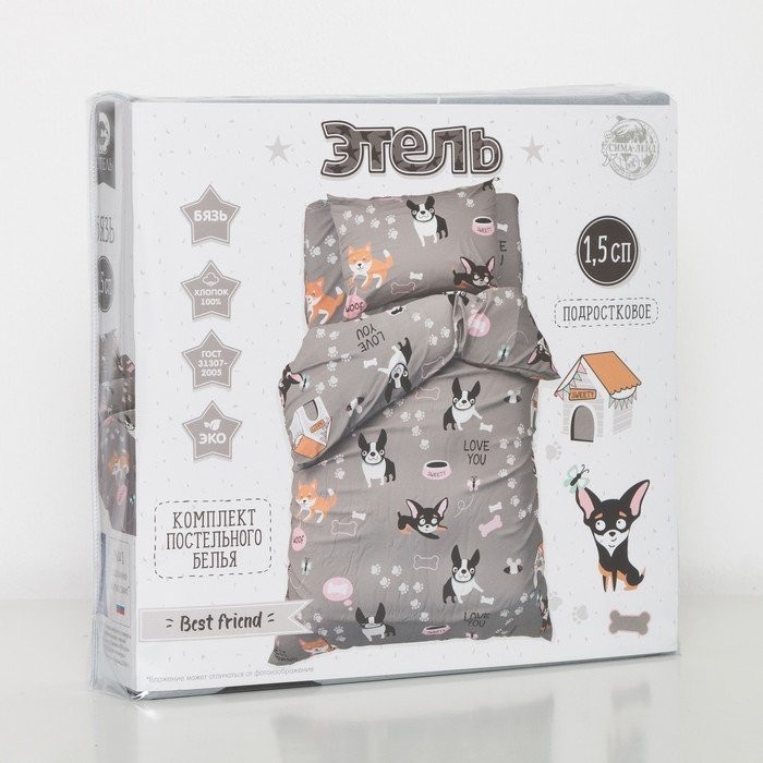 Постельное белье «Этель» 1.5 сп Best friend 143*215 см, 150*214 см, 50*70 см -1 шт,100% хл, бязь