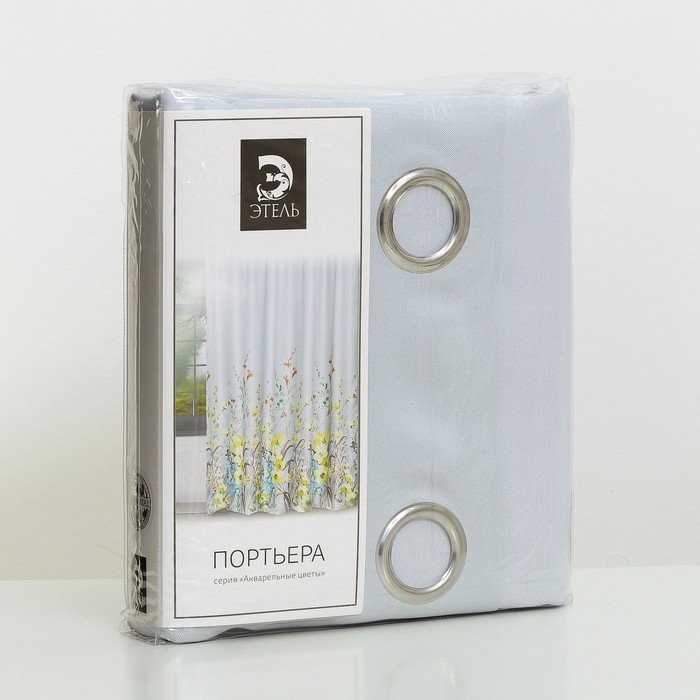 Штора портьерная Этель «Акварель» цв.желтый, 145*250см, на люверсах, пл. 210 г/м2, 100 п/э