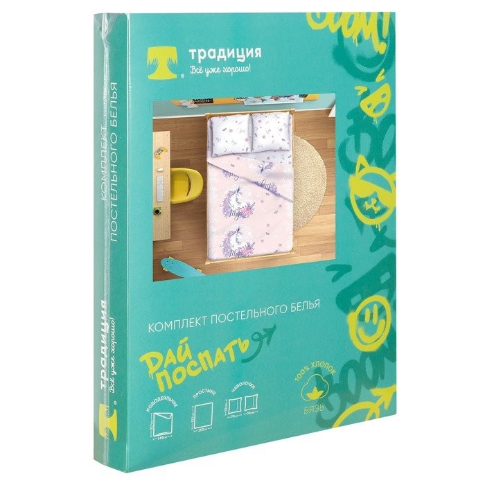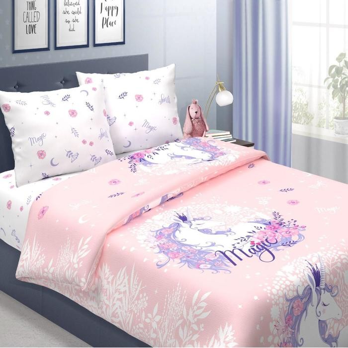Постельное бельё 1,5сп «Дай поспать» Единорог, розовый 147×217, 150×220, 70х70см — 2 шт
