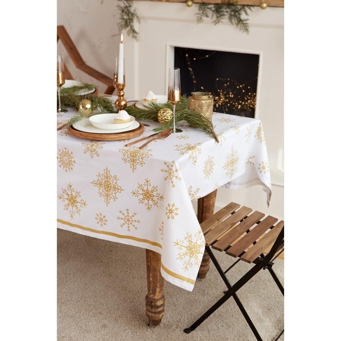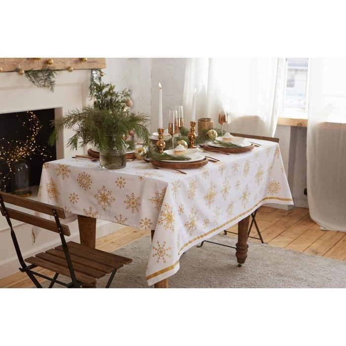 Скатерть «Этель» Золотые снежинки 149х220см, 100%хл, 190г/м2