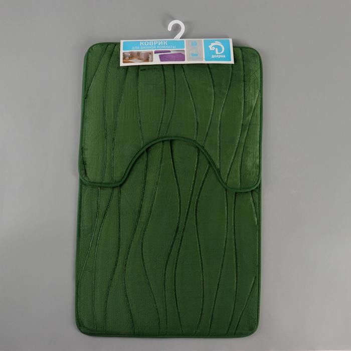 Набор ковриков для ванны и туалета Доляна «Водоросли», 2 шт: 40×50, 50×80 см, цвет зелёный