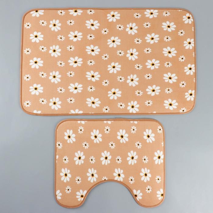 Набор ковриков для ванны и туалета «Ромашки», 2 шт: 50×80, 40×50 см, цвет бежевый