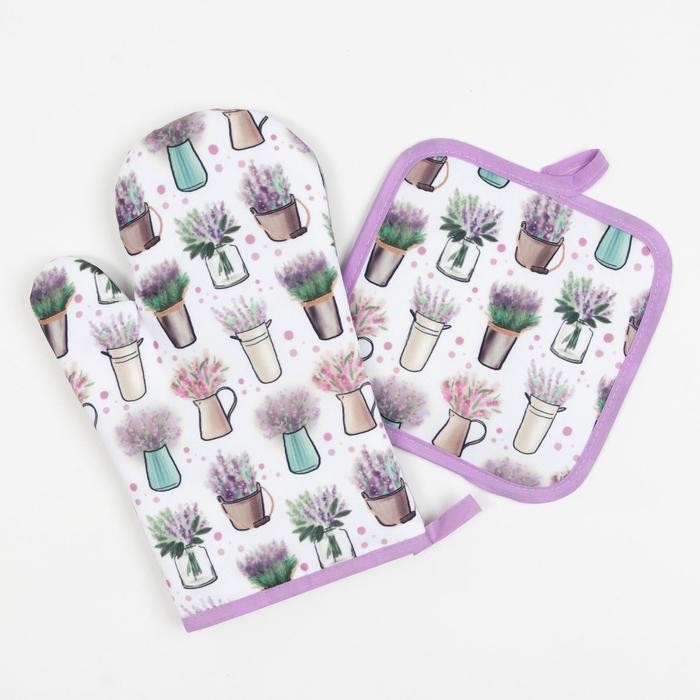 Кухонный набор Доляна «Прованс», прихватка 17*17 см, рукавица 26*16 см,100% п/э