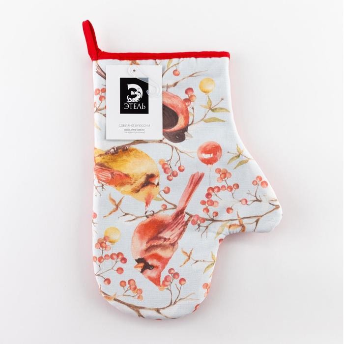 Варежка-прихватка «Winter birds» 20х28см, саржа, 100% х/л, ватин 250г/м2