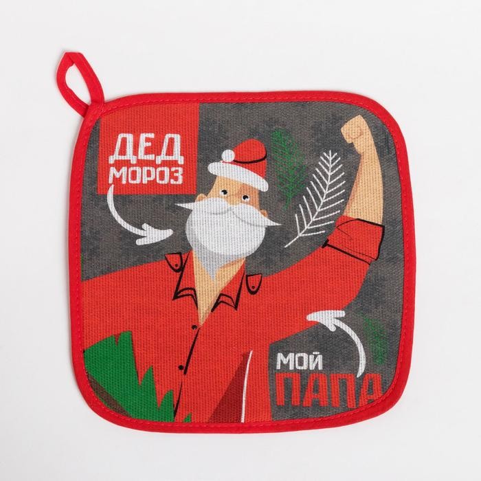 Новогодний набор кухонный «Самый любимый папа» фартук, полотенце, прихватка