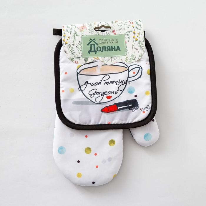 Кухонный набор «Доляна» Good morning, прихватка 17×17 см, рукавица 26×16 см