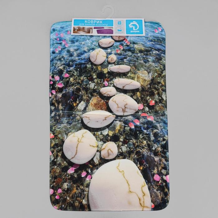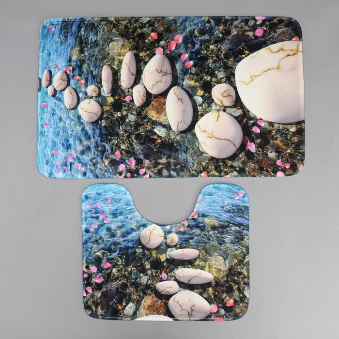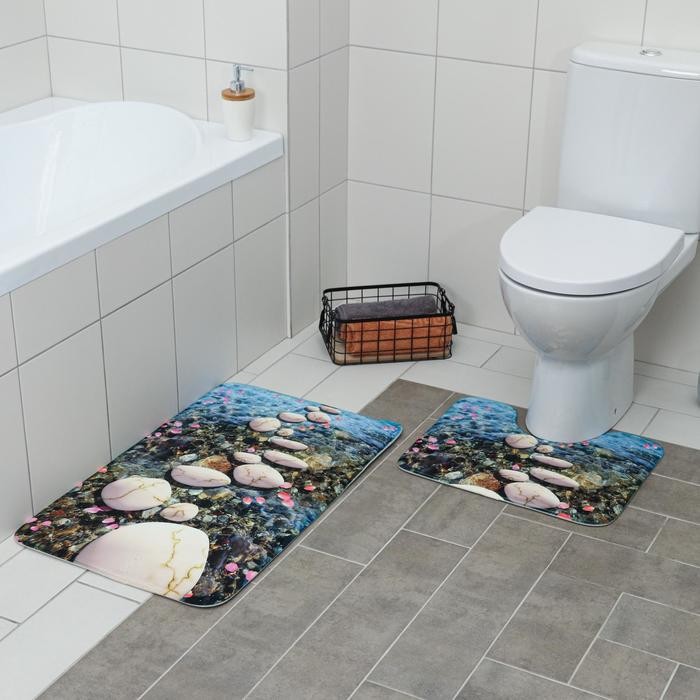 Набор ковриков для ванны и туалета Доляна «Галька», 2 шт 79×50, 50×39 см