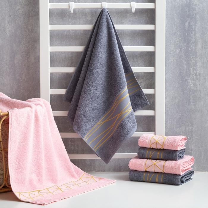 Полотенце махровое «Полосы» серый 50×90 см, 100% хл, 370гр/м2