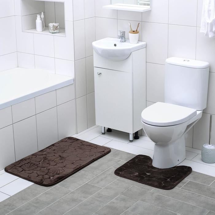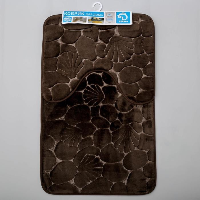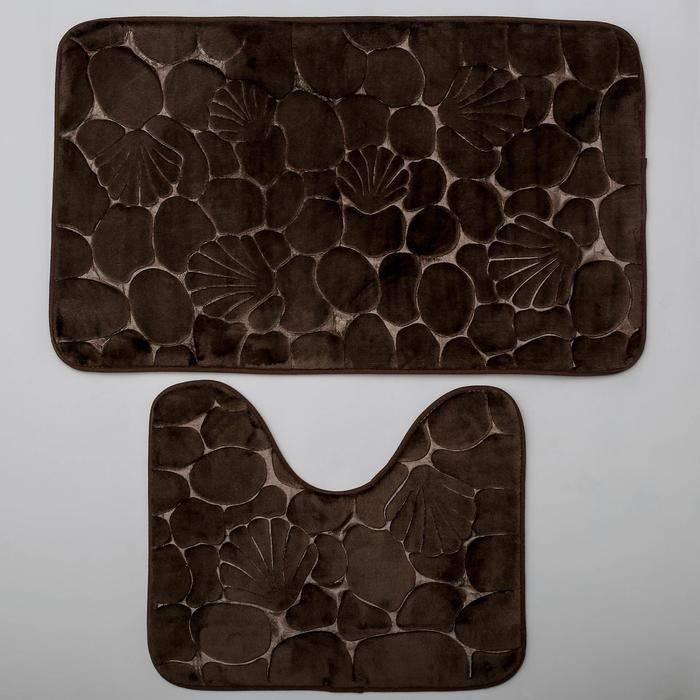 Набор ковриков для ванны и туалета Доляна «Галька, ракушки», 2 шт: 40×50, 50×80 см