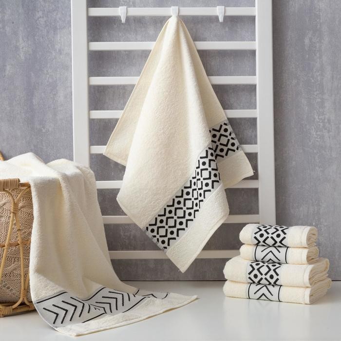 Полотенце махровое Этель «Орнамент», молочное 50×90 см, 100% хл, 370гр/м2