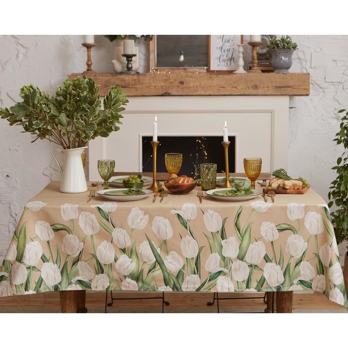 Скатерть «Этель» Белые тюльпаны 149х220см, 100% хл, саржа 190 г/м2