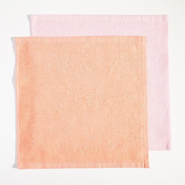 Набор полотенец в корзинке Этель «Фламинго» 30х30см — 2шт, цв.розовый/персиковый, 100% хл