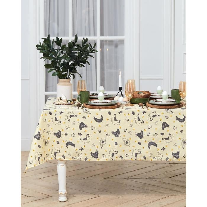 Скатерть пасхальная, Доляна Сhicken farm 180×144 см, 100% хлопок, 164 г/м2
