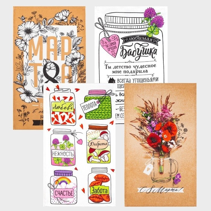Набор кухонных полотенец Доляна «Любимая бабушка», 35х60см-4шт, 100% хл