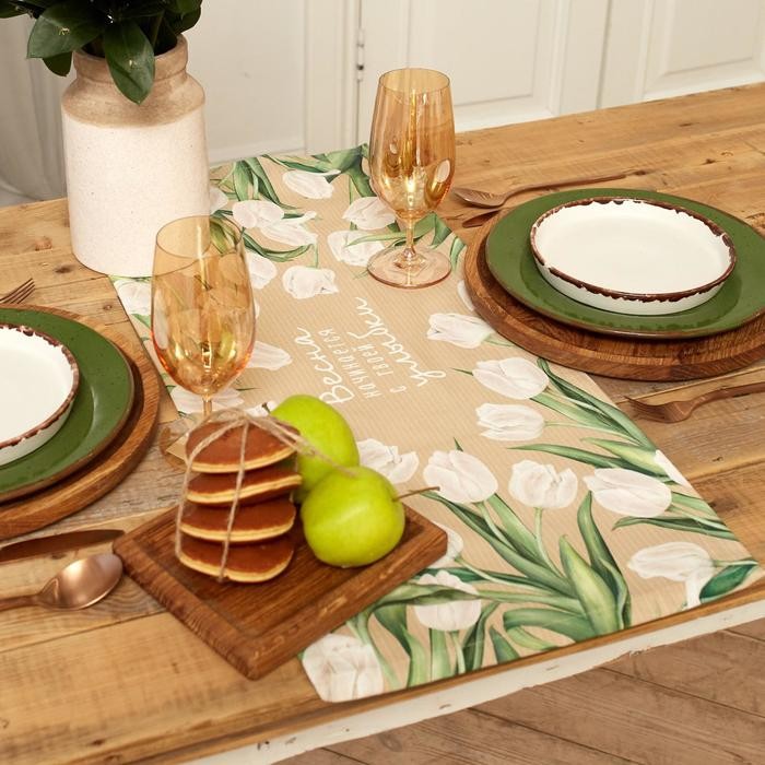 Дорожка «Этель» Белые тюльпаны 30*70 см, 100% хлопок, саржа 190 г/м2