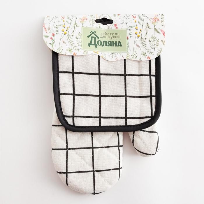 Кухонный набор Доляна «Клетка» цв.белый, прихватка 17*17 см, рукавица 26*16 см,100% п/э