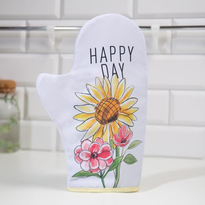 Варежка-прихватка «Доляна» Подсолнух 20х28см, габардин, 35% х/л, 65% п/э, ватин 250г/м2