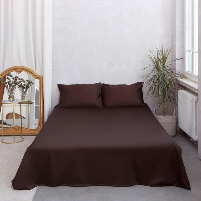 Простыня Этель 235*260 см, цв.темно-коричневый, 100% хлопок, мако-сатин, 125 г/м²