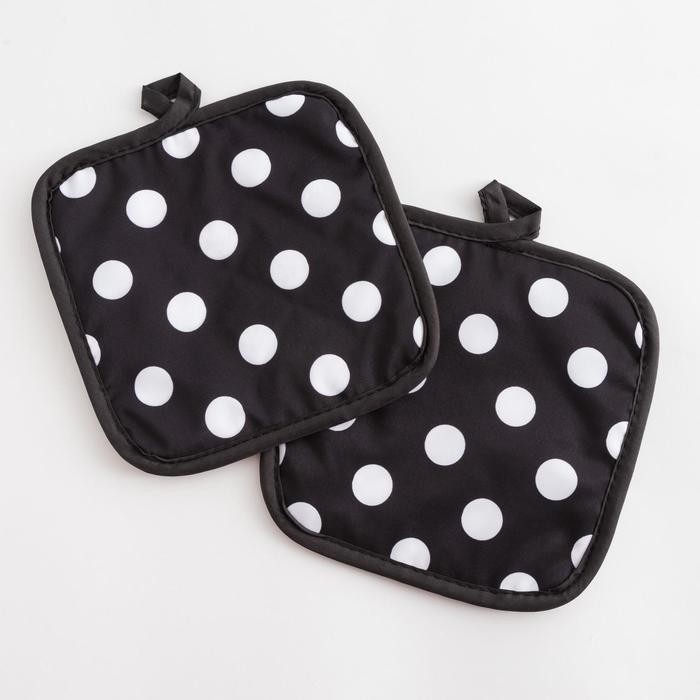 Кухонный набор Доляна «Горох» цв.черный, прихватка 17*17 см — 2 шт,100% п/э